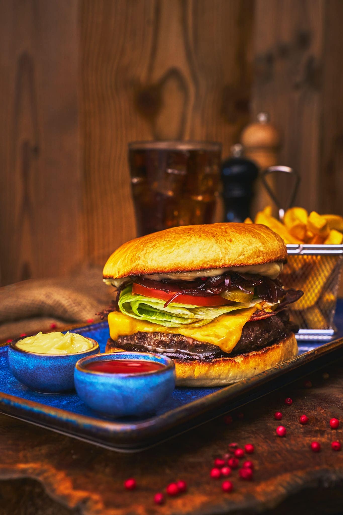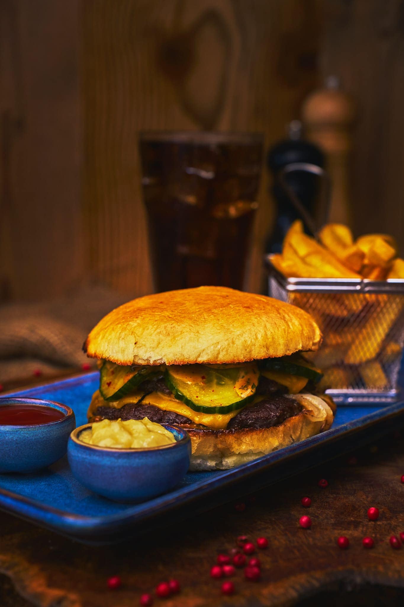 i wyrazistego smaku. Przygotowywane na bazie starannie wyselekcjonowanego mięsa, świeżych dodatków i autorskich sosów, tworzą kompozycje, które stawiają na konkret i pełnię smaku. Każdy burger powstaje z dbałością o proporcje i powtarzalność, dzięki czemu od pierwszego kęsa wiadomo, czego się spodziewać. To propozycja dla tych, którzy oczekują solidnego jedzenia, wyraźnego charakteru i kuchni, która nie idzie na skróty.